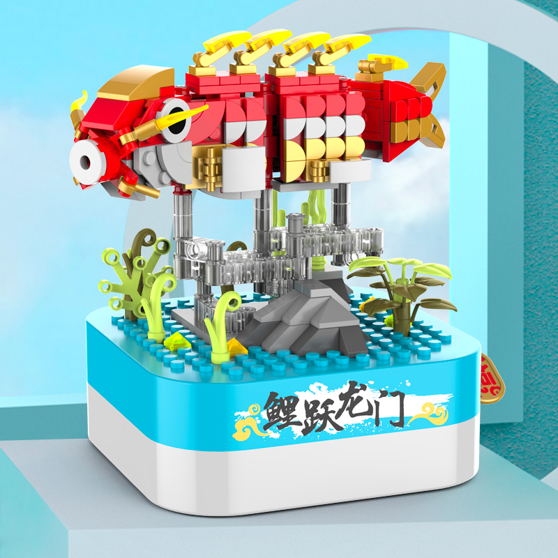 將積木與音樂盒完美結合,好玩又時尚。純機械動力設計更環保,音樂盒發條轉動帶動錦鯉輕盈的游動,益智拼搭,時尚美觀,還能充當家居精品擺件。